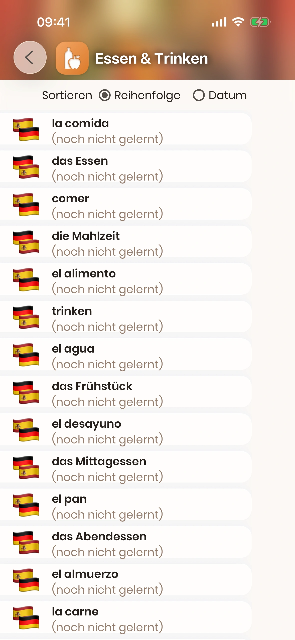 Unsere Lernmethode wurde jahrzehntelang erforscht und ist die effektivste Methode zum Erlernen einer Sprache. Mehr über Spaced Repetition erfahren.