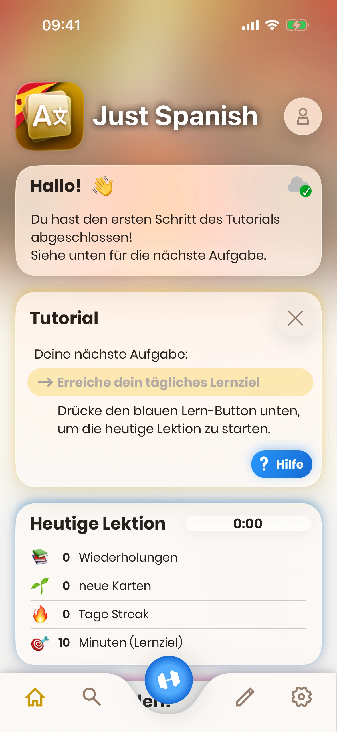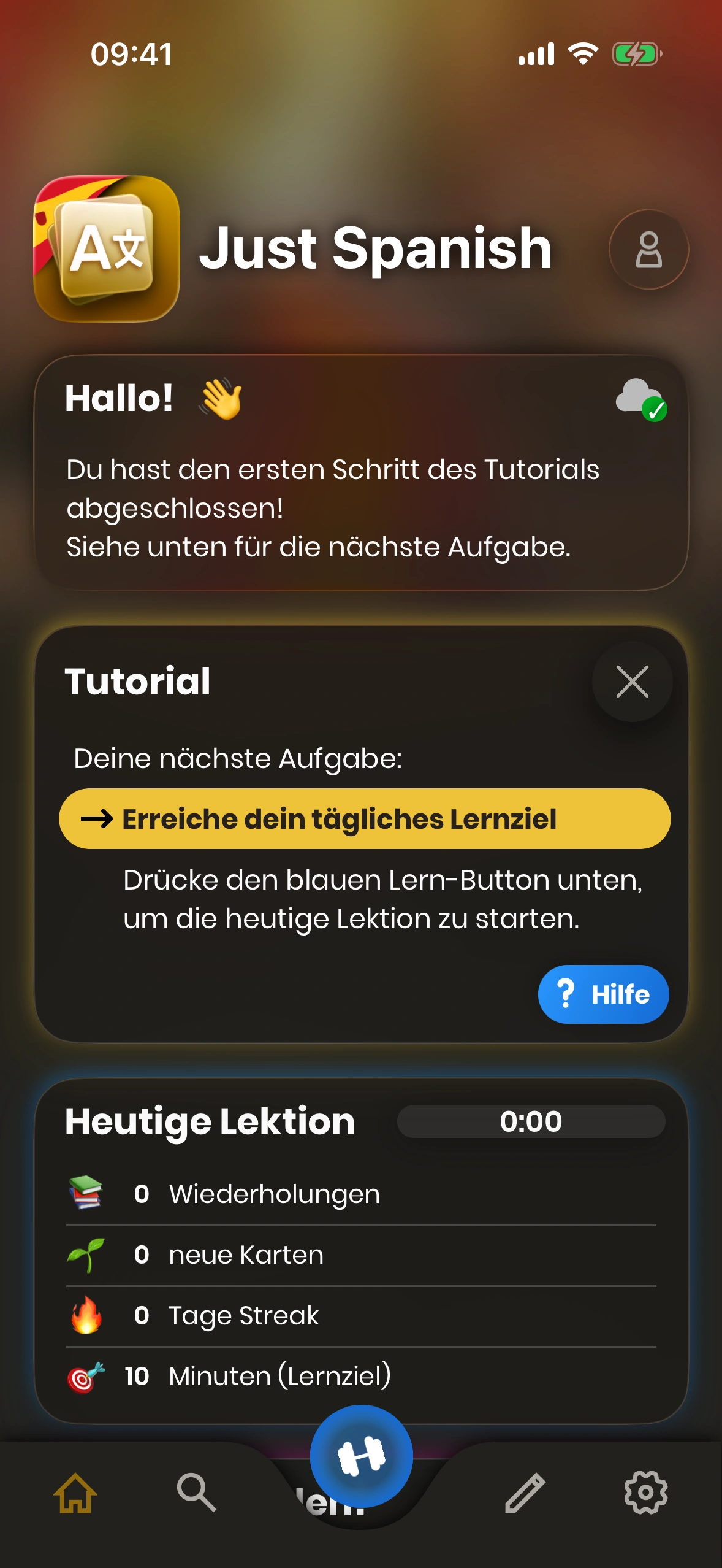 - Lernen‑Button: Startet deine tägliche Lernsitzung.