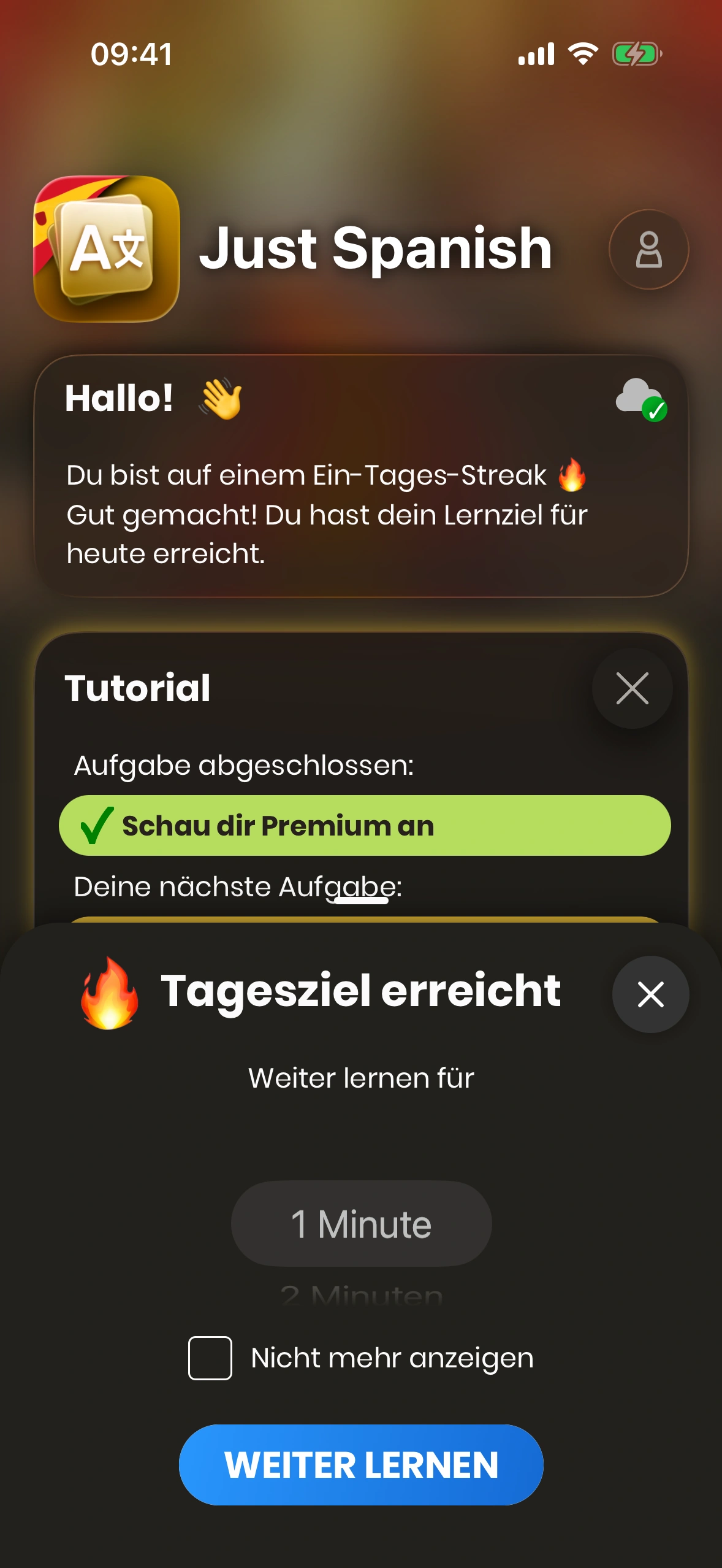 Nachdem die Session beendet wurde, erscheint ein Bottom Sheet, das dir anzeigt, ob du dein Tagesziel erreicht hast oder nicht.
