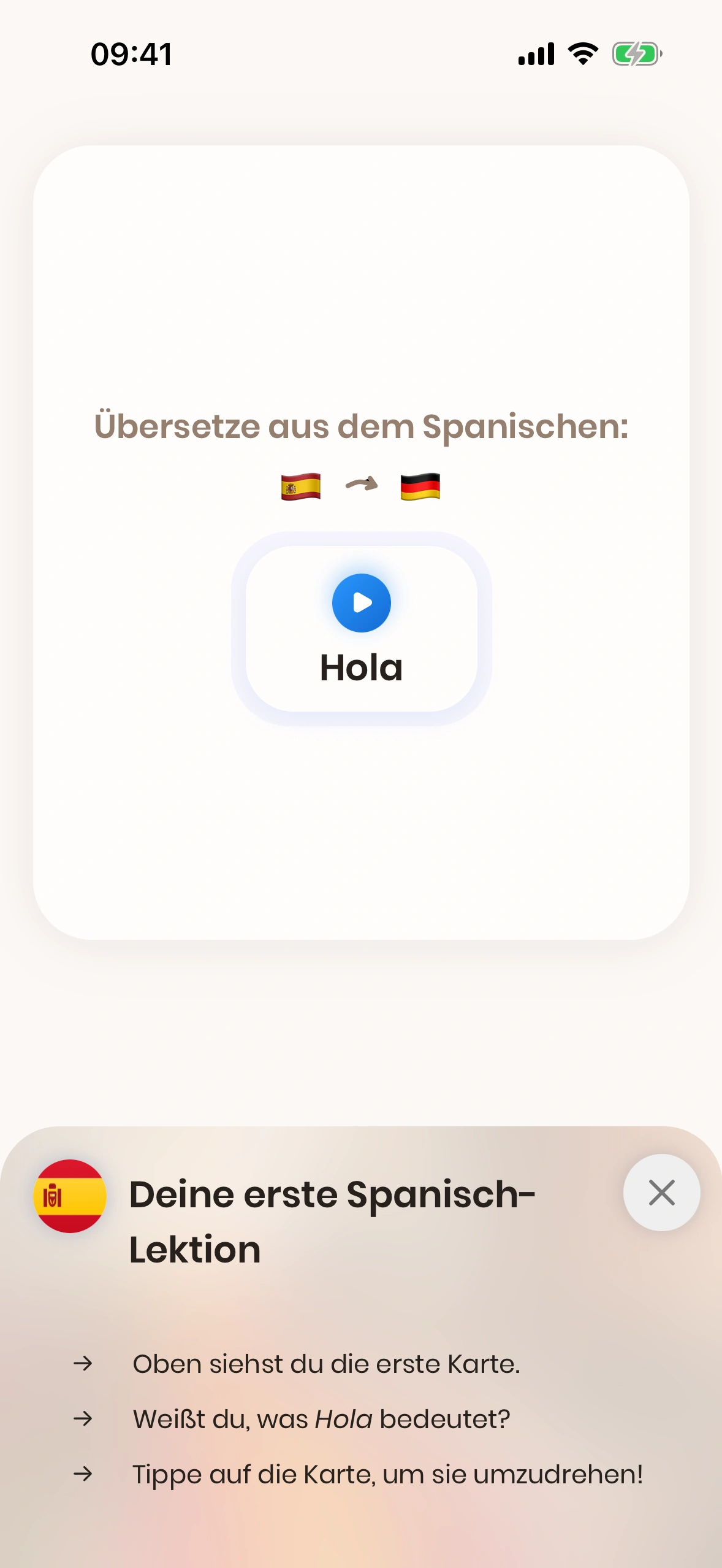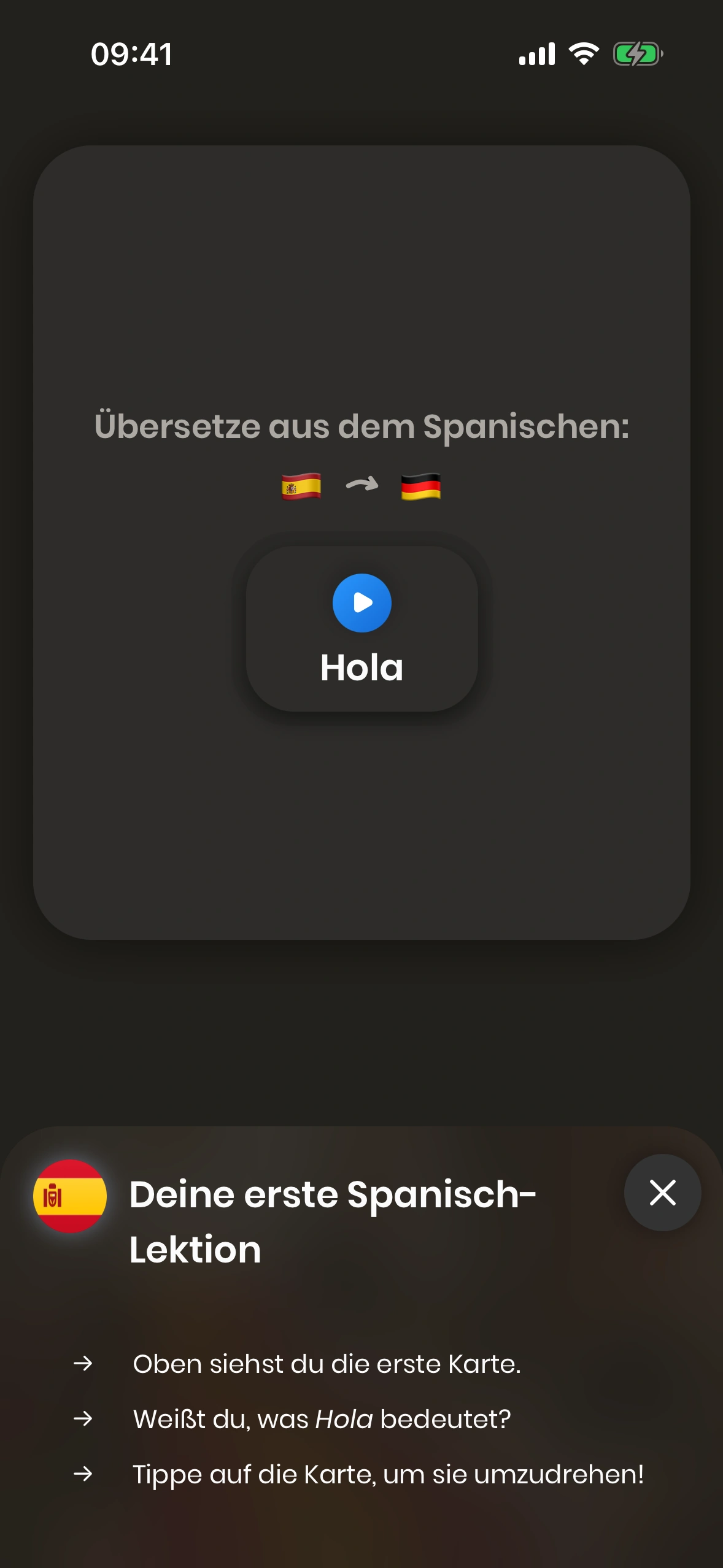 Wenn du Just Spanish zum ersten Mal startest, wirst du durch das Tutorial geführt.