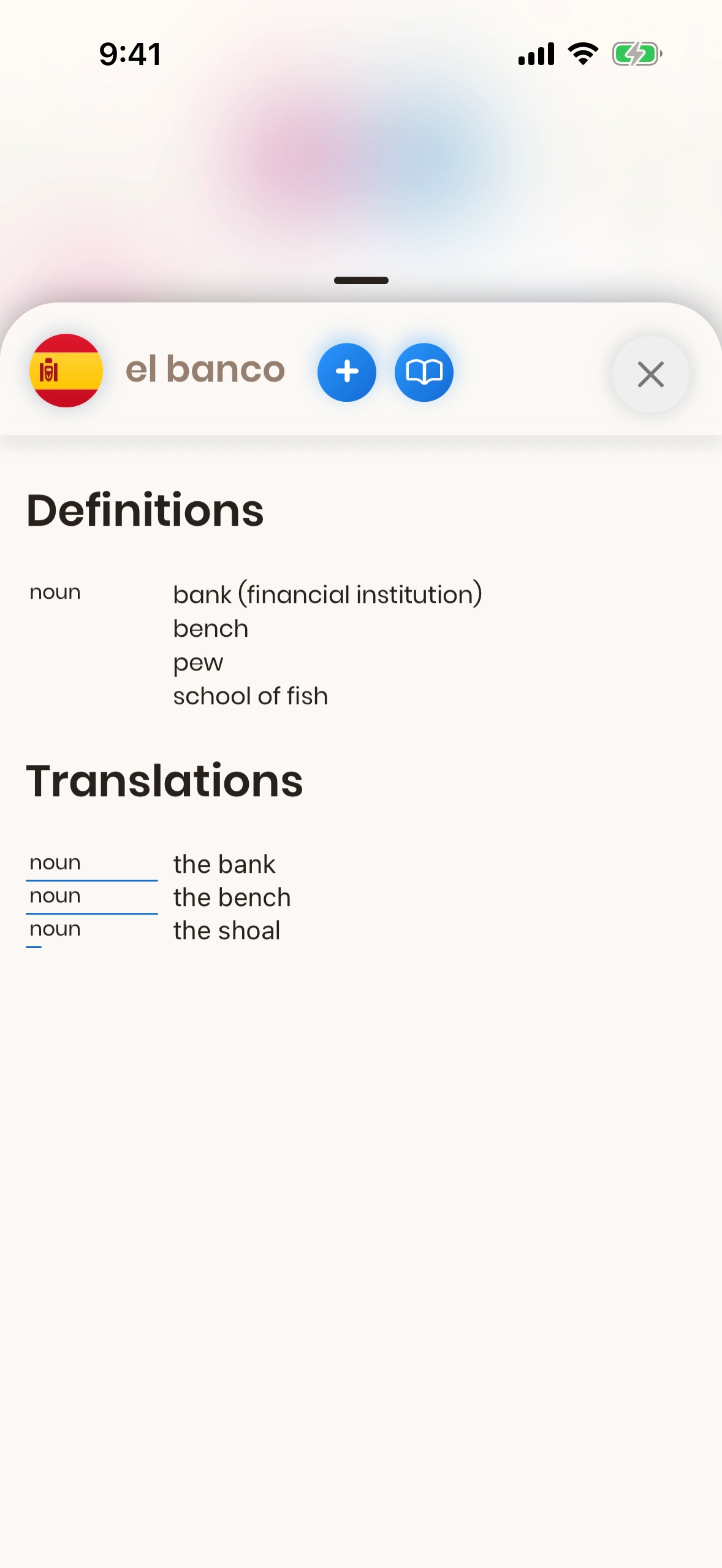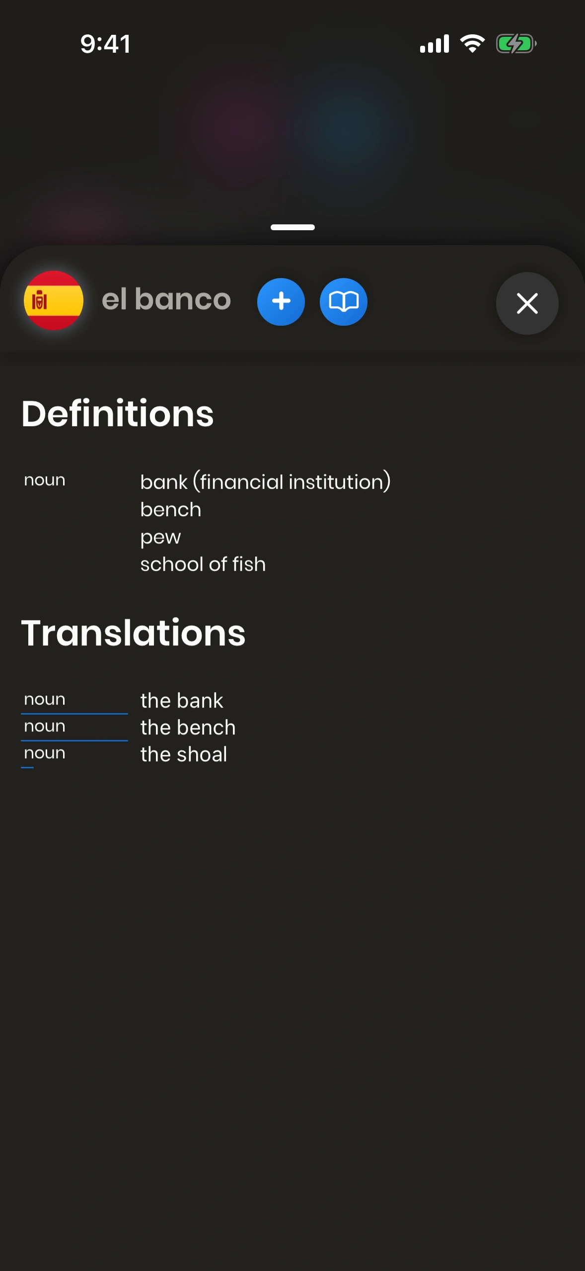 If the Add Button appears in other areas of the app, it might also offer the option "Word Details", which will show you the Word Modal (see above).