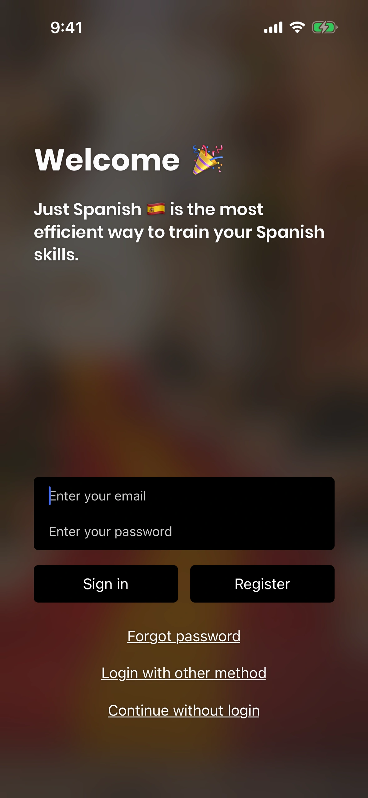 - If you prefer the classical way, you can also log in with your email address and password. Just press "Log in with email / password".