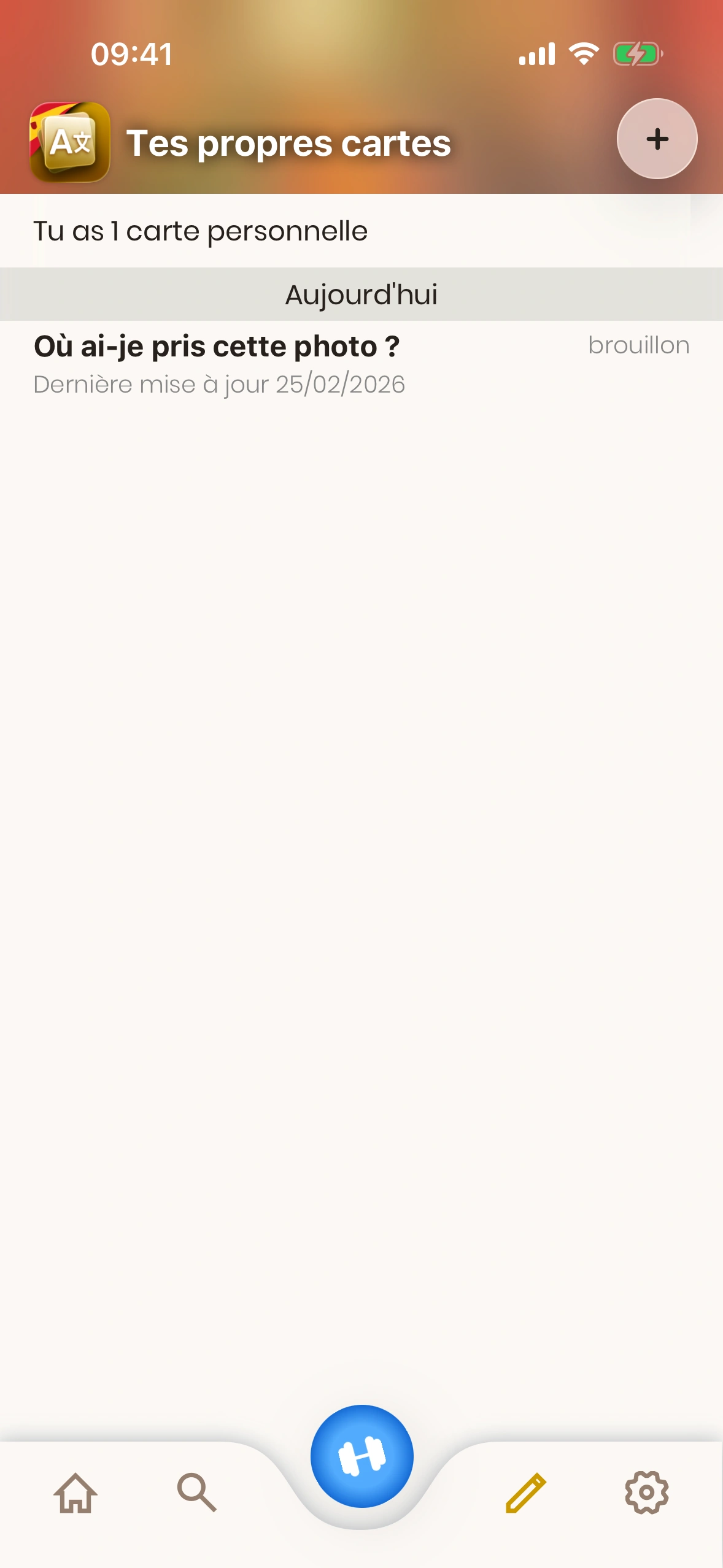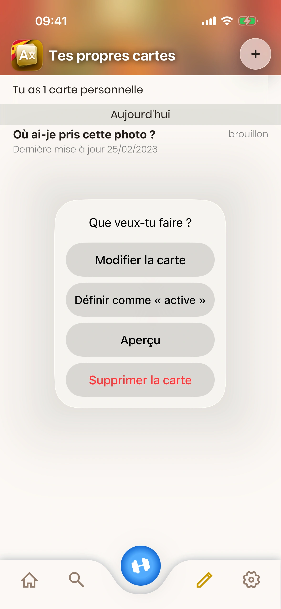 - Liste de cartes : Dans cette liste, chaque entrée est l'une de tes cartes personnelles. Appuie sur une carte pour la modifier ou la supprimer.