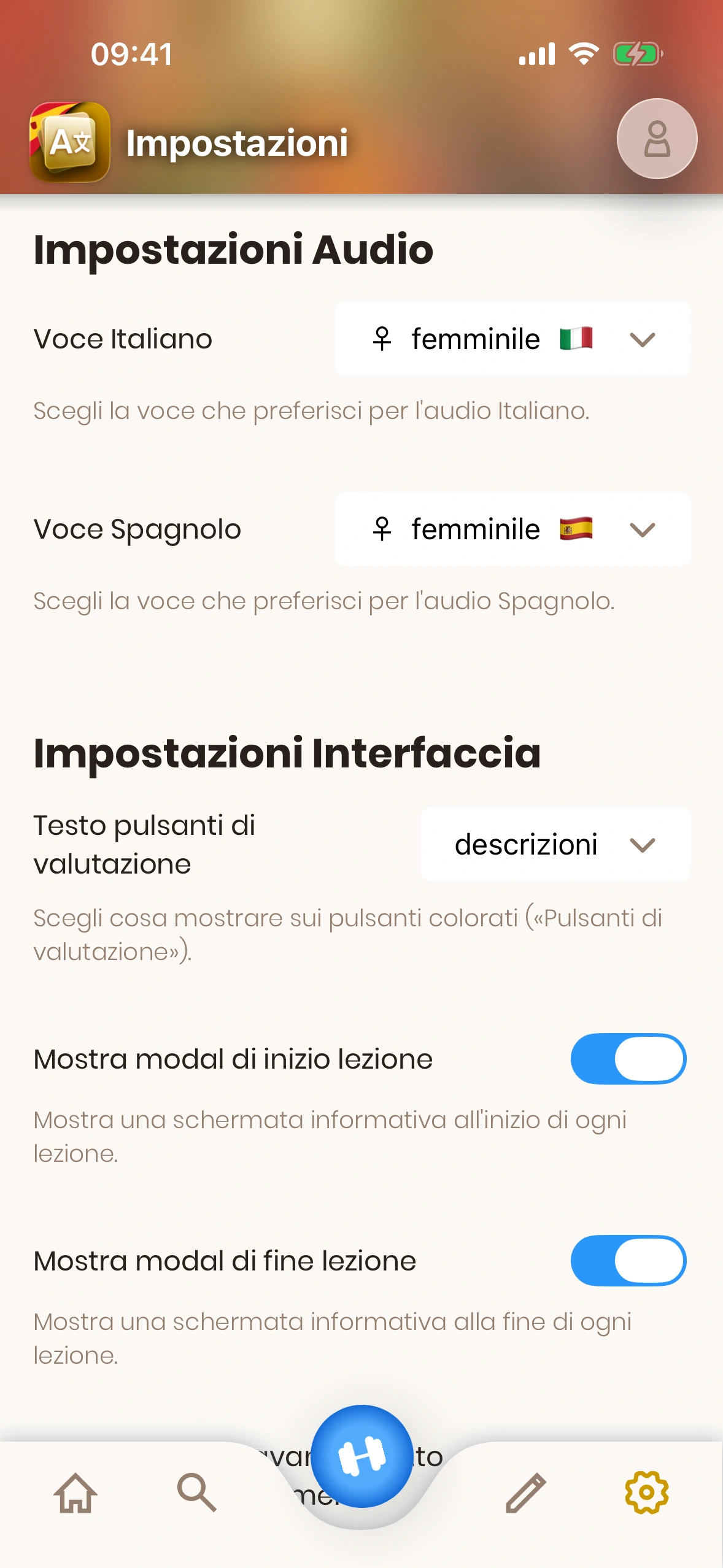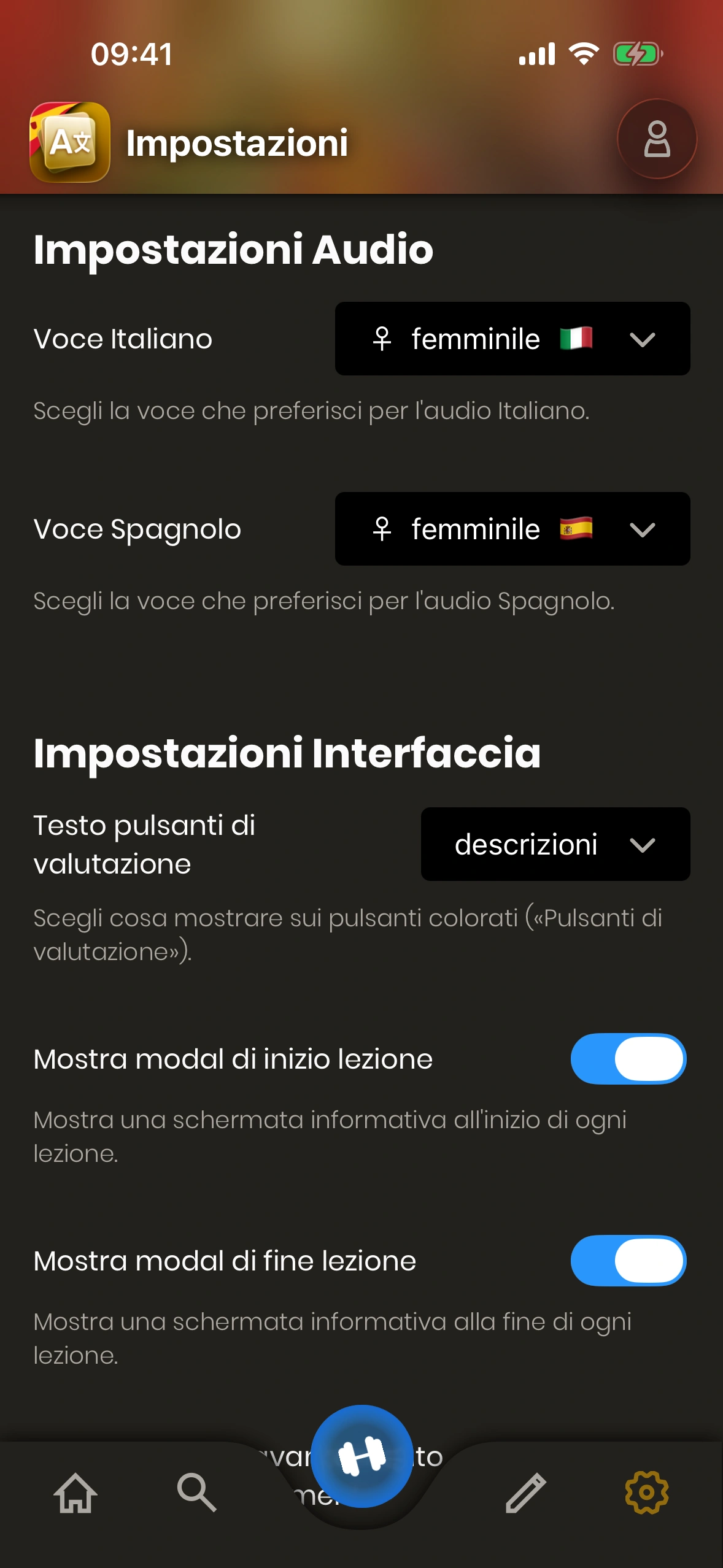 Per Spagnolo e Italiano, puoi scegliere tra voci diverse.