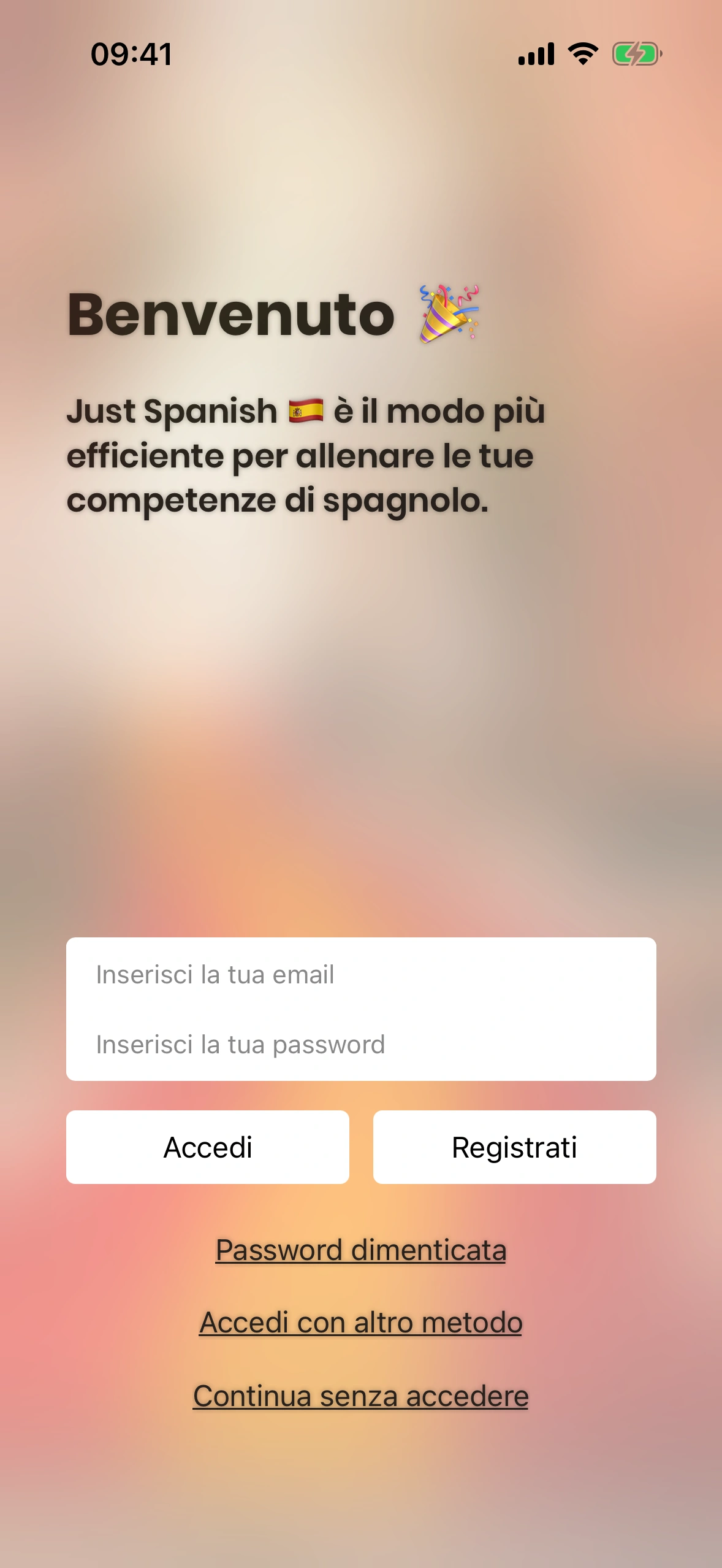- Il modo più semplice è l'autenticazione Apple. Premi semplicemente "Accedi con Apple" e verrai connesso/a usando il tuo Apple ID.