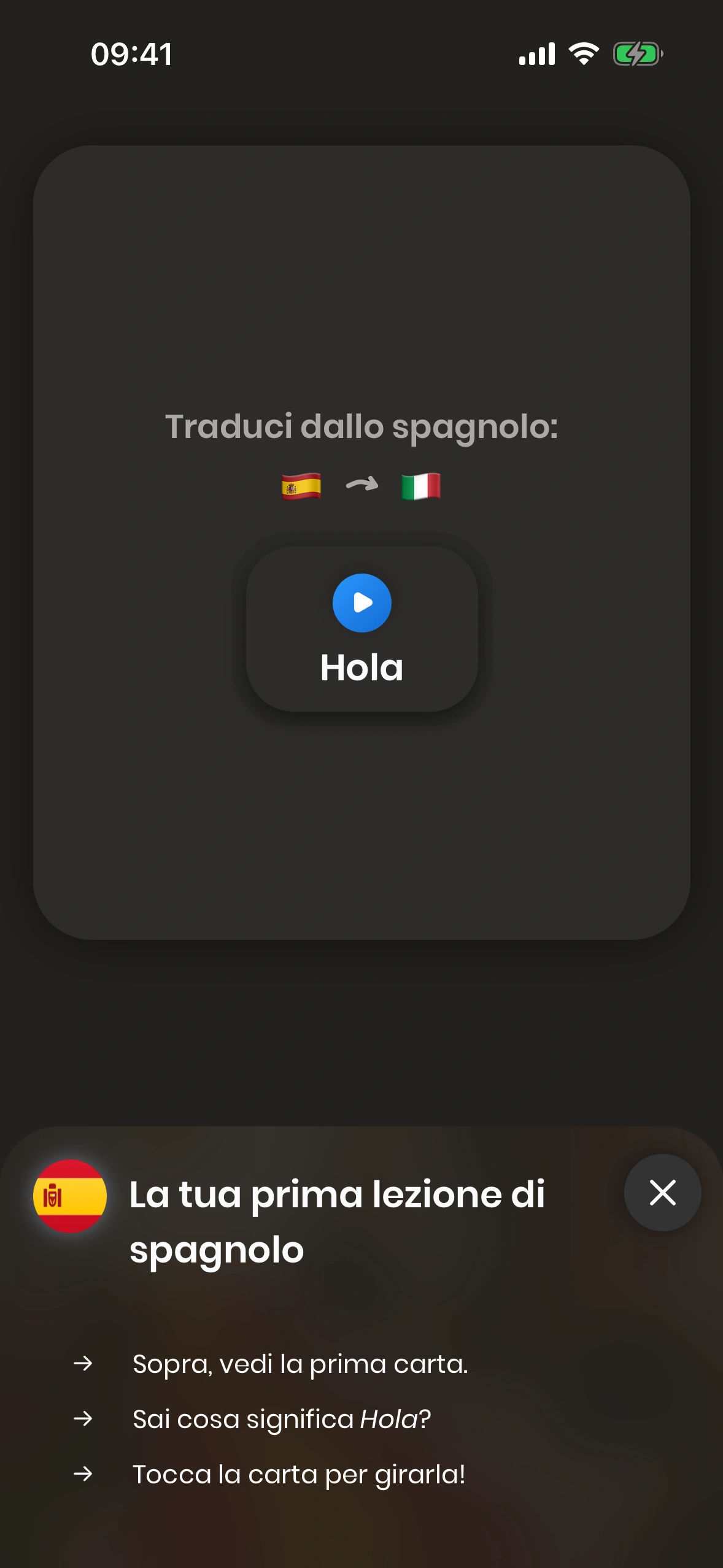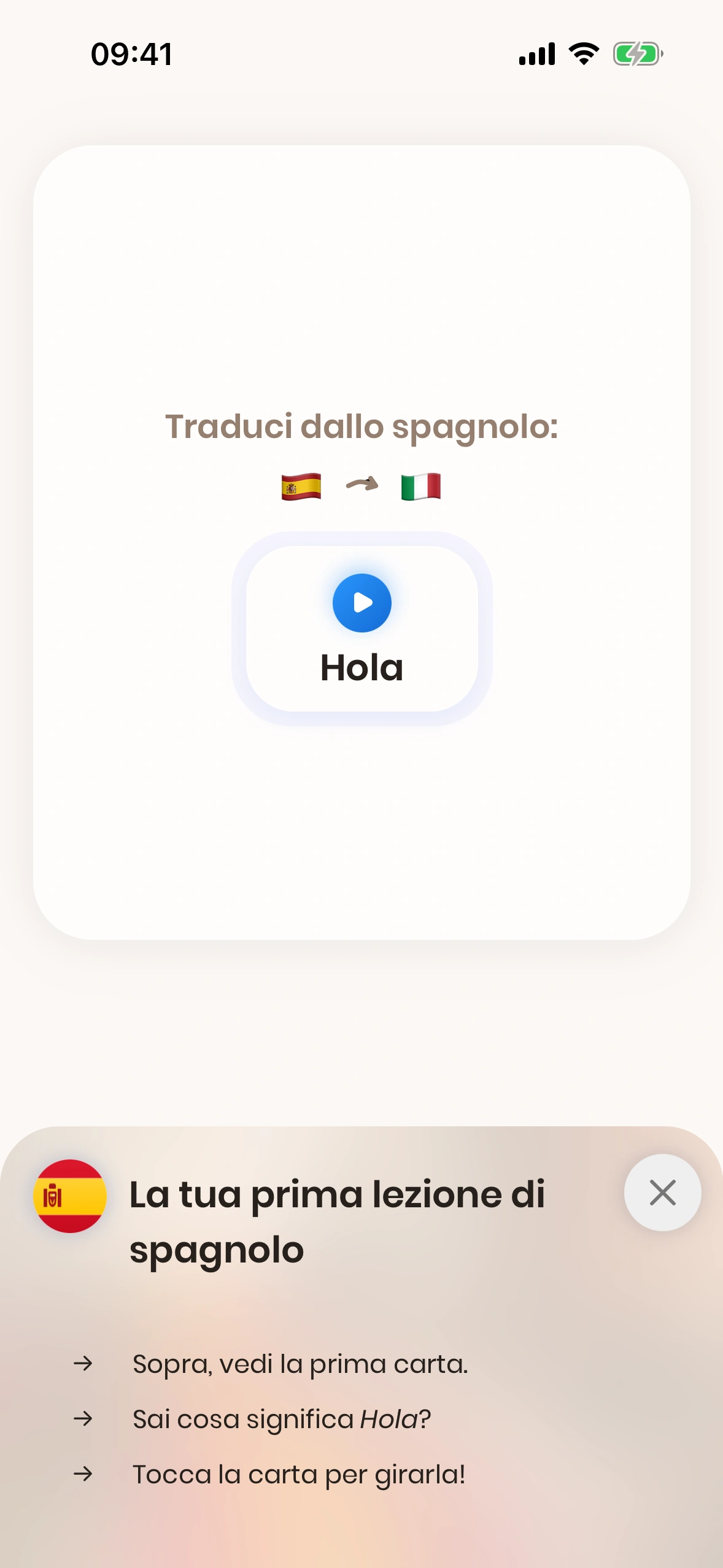Quando avvii Just Spanish per la prima volta, verrai guidato/a attraverso il tutorial.